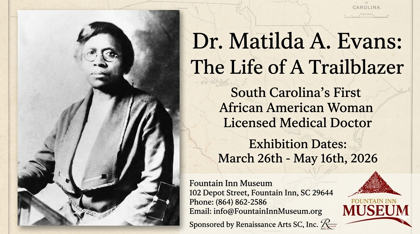 • Location: Fountain Inn Museum, 102 Depot Street, Fountain Inn, SC 29644